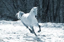 - Może wkrótce dasz mi się pogłaskać...-mówiła do konia dziewczynka.- Gdybyś był moim koniem miałbyś u mnie jak w raju...( Zuzanna obok swojego domu miała małą nie wyremontowaną stajnie)Nie dam ojcu zrobić ze stajni magazyn. Nie bój się nie długo będziesz mój... A teraz proszę, daj mi się pogłaskać...- wyciągnęła rękę do Pielgrzyma, ale ten uniósł wyżej głowę nie pozwalając się dotknąć, jakby mówił "jeszcze nie teraz"...Nagle ni stąd, ni zowąd zaczął padać biały śnieg, po pół godzinie były już jego duże zaspy. Dziewczynka i koń zaczęli po nim skakać!